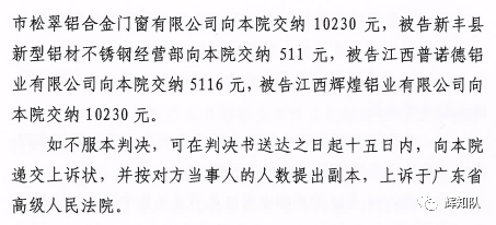 信阳凤铝系列维权案:诉辉煌公司等四被告,法院判赔250余万