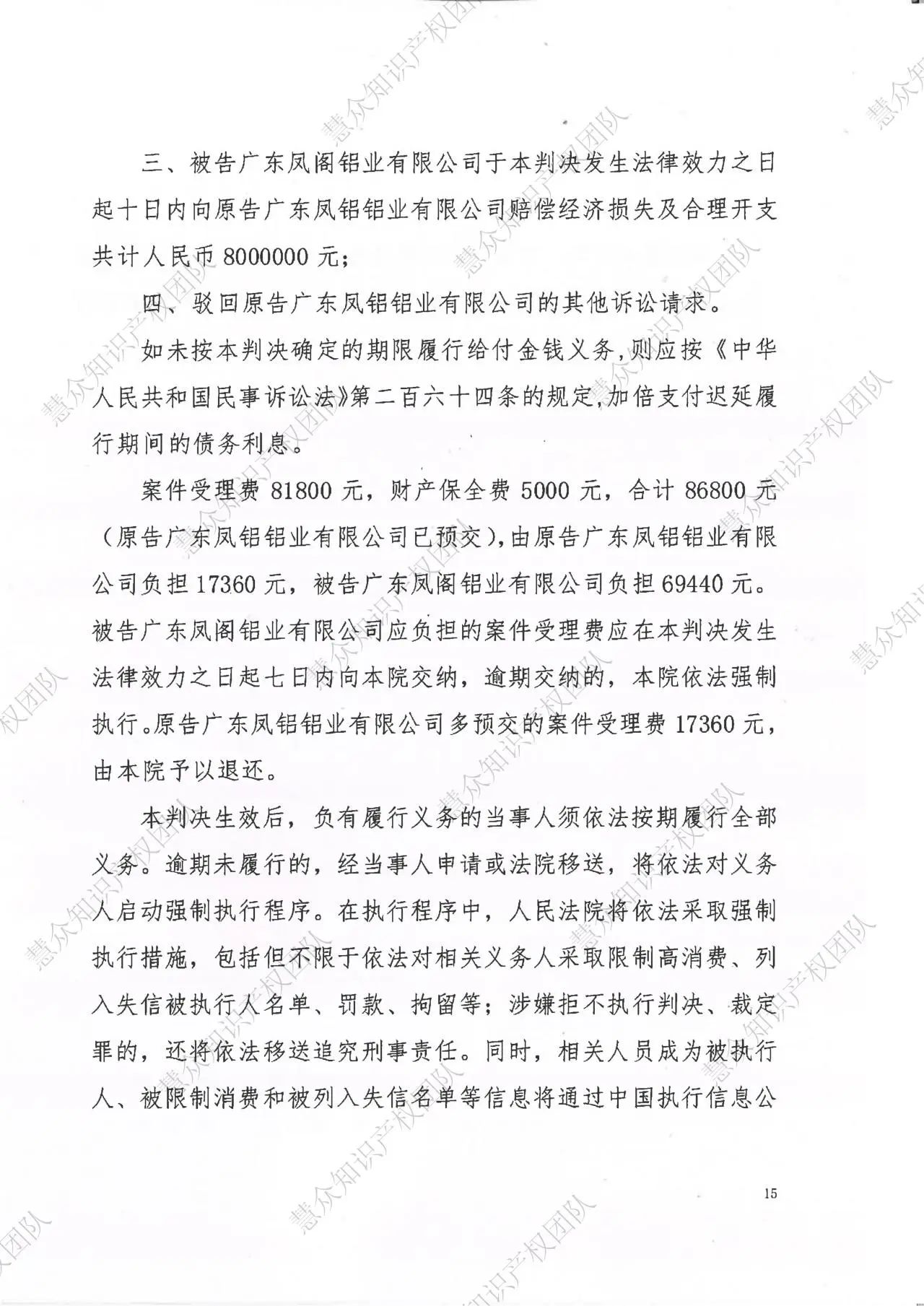 信阳判赔800万!辉知队代理“凤铝”商标维权案胜诉